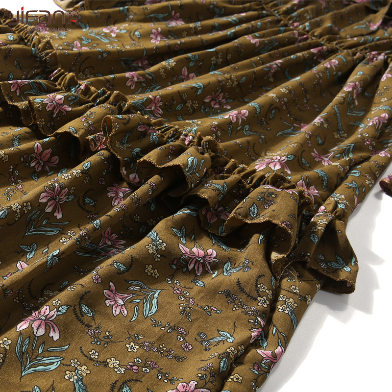 / 春夏雪紡拼接百褶連衣裙女裝韓版碎花長袖打底沙灘裙新款