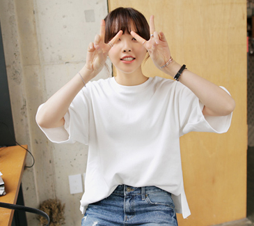 / 夏裝純白色韓版百搭圓領T恤女短袖寬松體恤學生bf半中袖純棉上衣