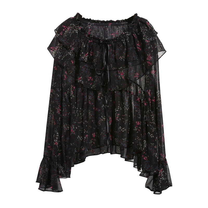 / 韓國女裝春夏新款甜美少女小清新碎花荷葉領娃娃衫女雪紡衫喇叭袖