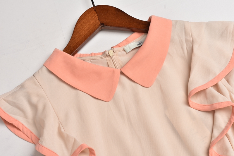 / 淑女氣質娃娃領花邊袖純色后拉鏈設計春夏新款上衣