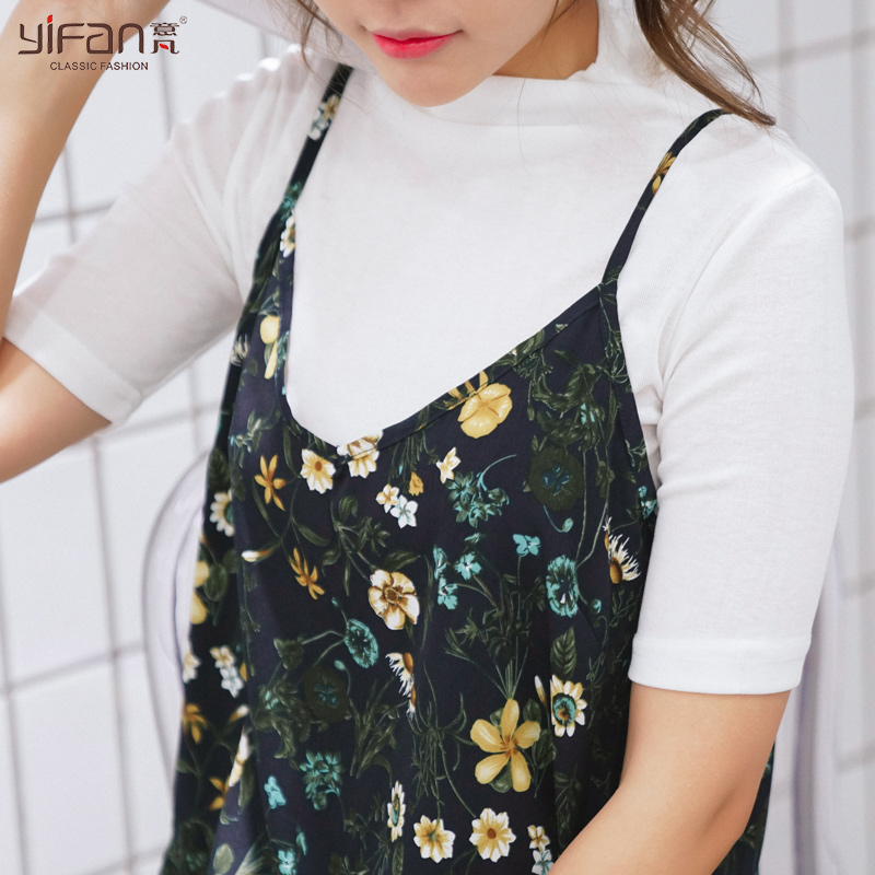 春夏韓版雪紡吊帶裙女碎花長裙寬松v領復古顯瘦中長款打底連衣裙