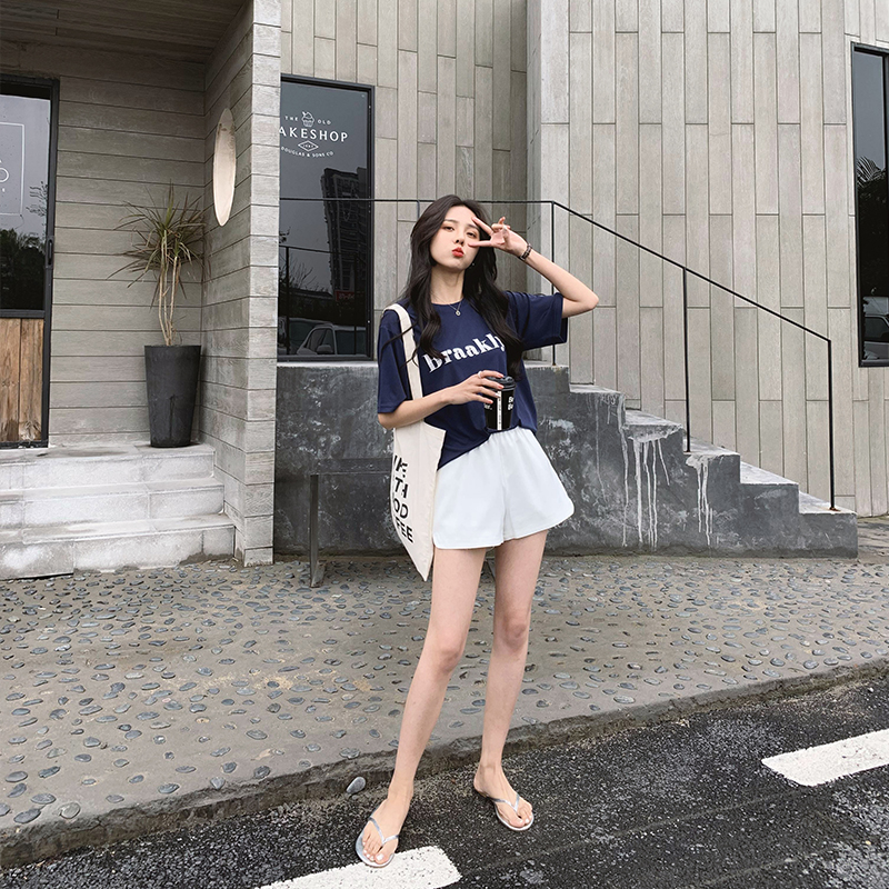 A7seven銅氨絲印花字母T恤女夏裝短袖韓版寬松顯瘦圓領白色體恤衫